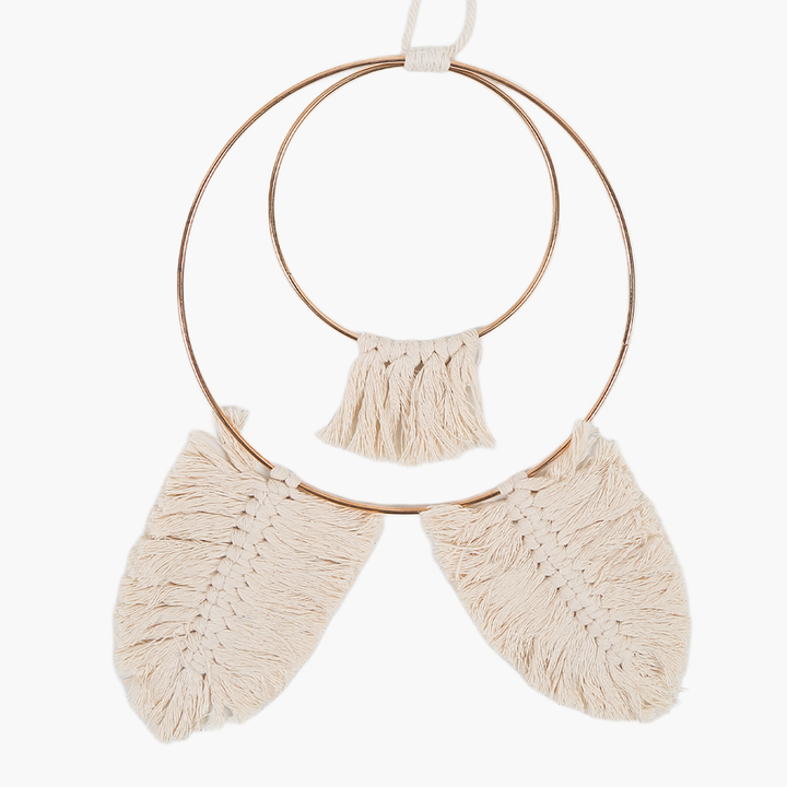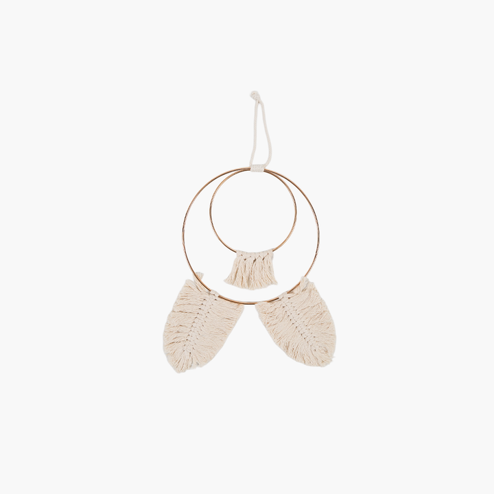 34x38 cm boyutlarındaki bu zarif yuvarlak makrome duvar dekoru, doğal tonları ve el yapımı detaylarıyla yaşam alanlarınızı özgün bir şekilde süsler. Çift halkalı tasarımı ve yaprak detayları, hem modern hem de rustik dekorasyon stillerine mükemmel uyum sağlar. Yüksek kaliteli pamuk ipliği ve doğal renk tonu ile mekânlarınıza sıcak bir atmosfer kazandırır.