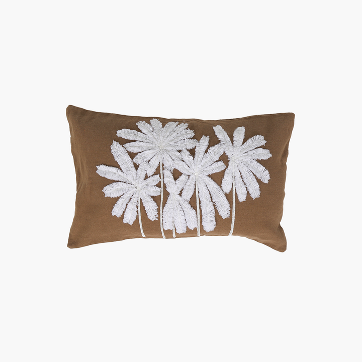Ürün İsmi: Kahverengi Keten Çoklu Palmiye Nakışlı Dikdörtgen Kırlent