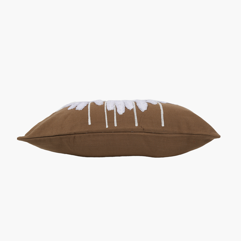 Doğadan ilham alan kahverengi tonları ve beyaz çoklu palmiye nakışıyla bu kırlent, oturma odanızda veya yatak odanızda şıklığı ve zarafeti bir araya getiriyor. Keten dokusunun doğal hissi, el işçiliği detaylarıyla bir araya gelerek eşsiz bir dekorasyon objesi sunar.