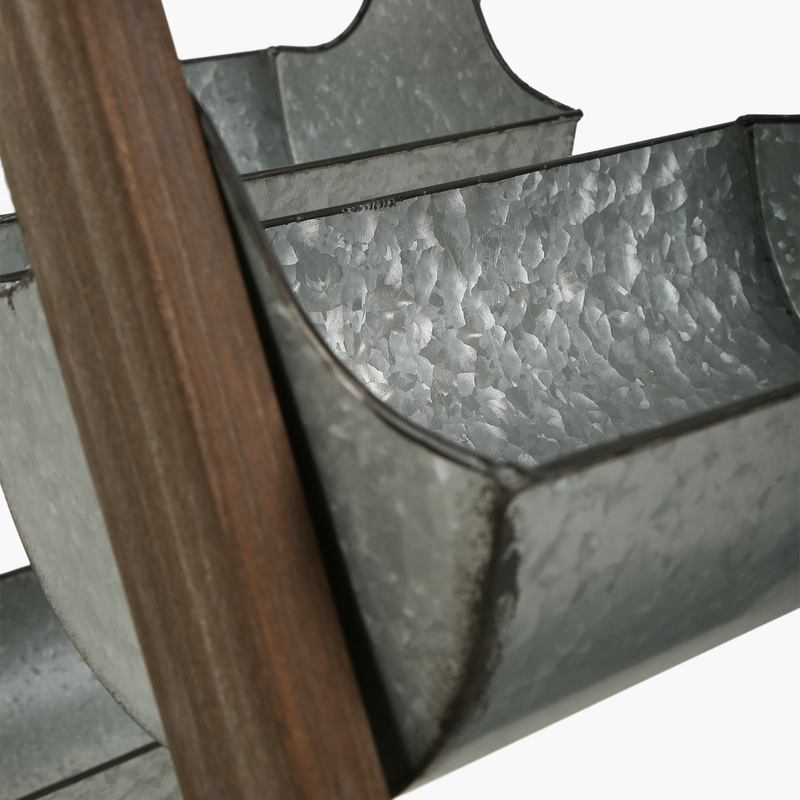 Malzeme: Ahşap çerçeve ve galvanizli metal saksılar