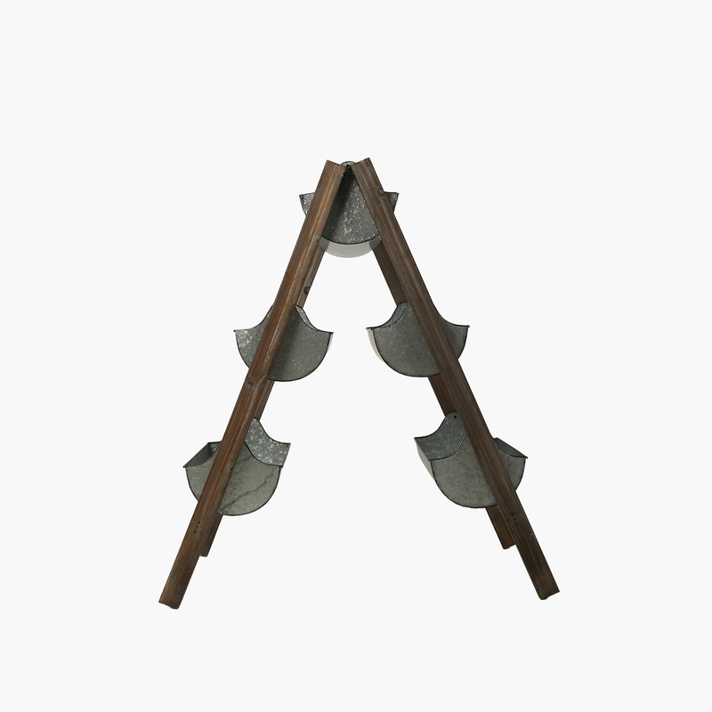 Ahşap ve metalin zarif birleşimiyle tasarlanan bu merdiven saksı, hem estetik hem de fonksiyonel bir çözüm sunuyor. Galvanizli metal saksılar dayanıklılık sağlarken, doğal ahşap çerçeve yaşam alanlarınıza sıcaklık katar. İç ve dış mekanlarda bitkilerinizi şık bir şekilde sergileyerek dekorasyonunuzu tamamlayabilirsiniz.
