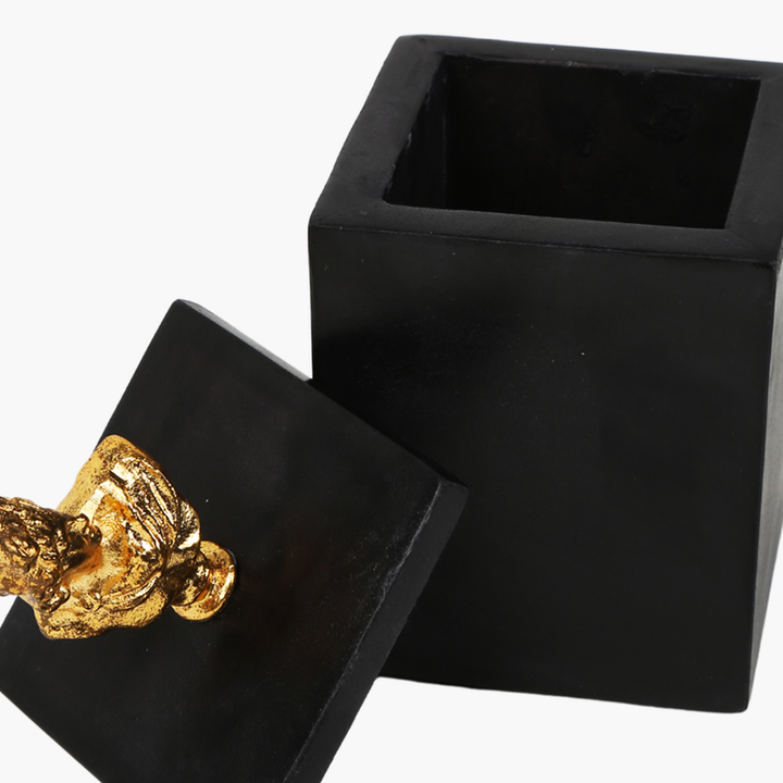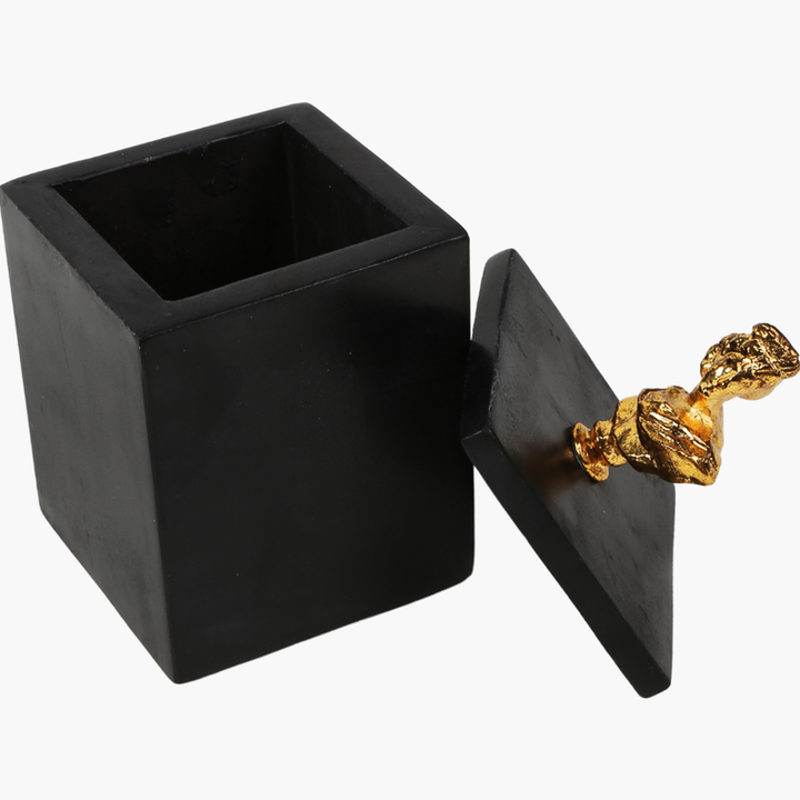 Ürün Metni: Şıklığı ve zarafeti bir arada sunan bu mermer kutu, evinizin her köşesinde sofistike bir hava yaratmak için ideal. Altın detaylı heykelciği ile zarif bir dokunuş ekleyen bu kutu, klasik ve modern tasarımları birleştiriyor. Siyah mermerin derinliği ve altın heykelcik ile uyumlu tasarımı, ona lüks bir görünüm kazandırıyor. Kapaklı yapısı ise hem dekoratif hem de pratik bir kullanım sunuyor.