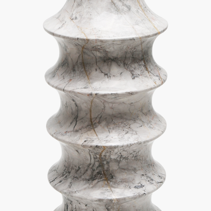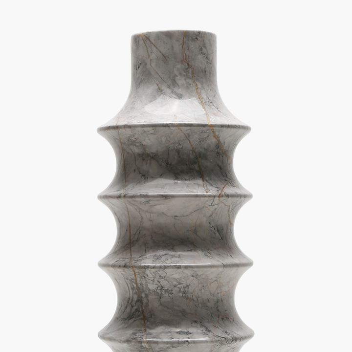 Bu vazo, zarif çiçekler ve dekoratif objelerle birlikte mükemmel bir uyum yakalar. Aynı tarzda mermer veya taş aksesuarlarla kombinlenerek şık bir görünüm elde edebilirsiniz.