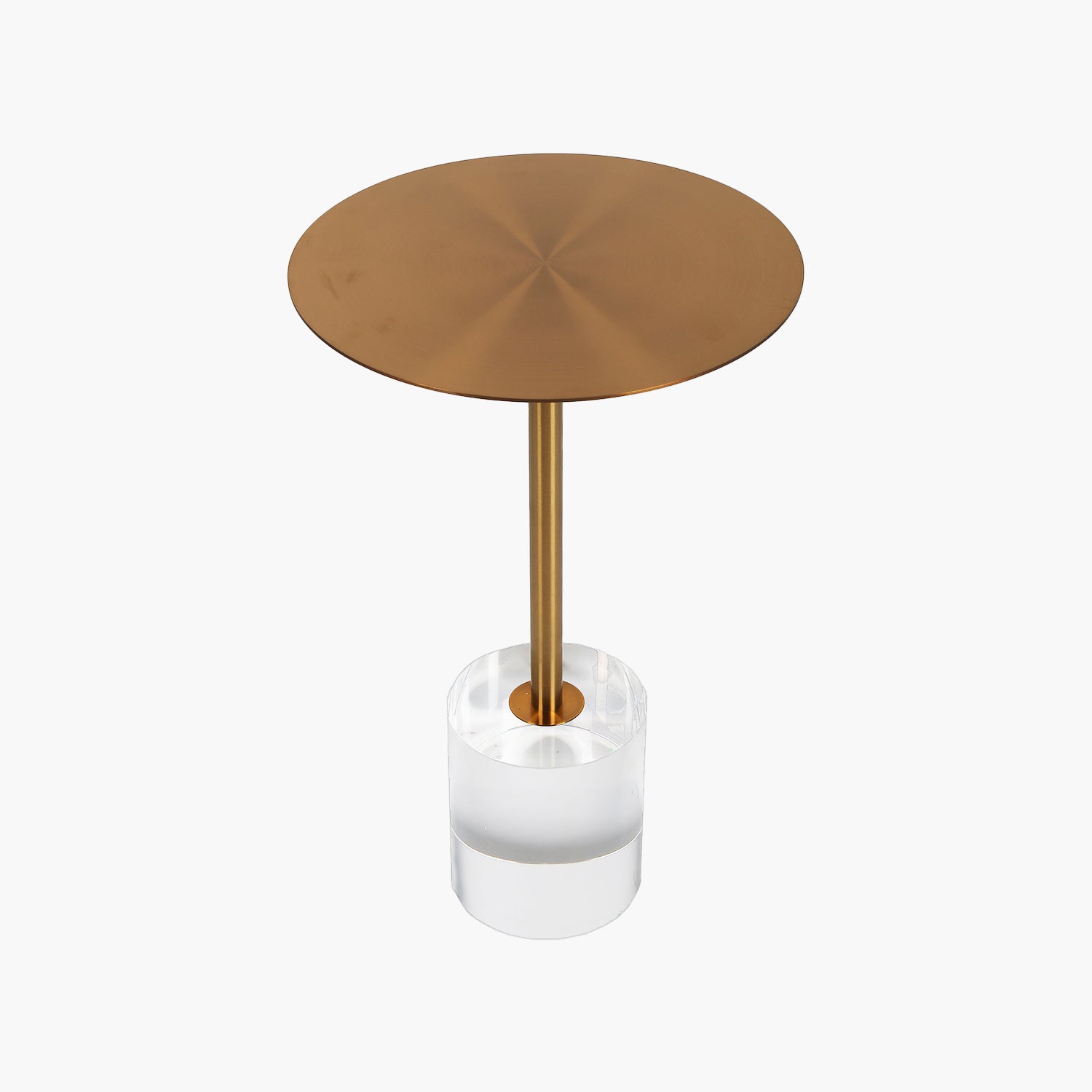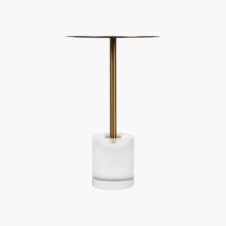 Bu yan sehpa, altın detaylı dekoratif objeler veya bir masa lambasıyla kombinlenerek daha etkileyici bir görünüm yaratabilir. Şeffaf akrilik ayağı sayesinde, mekanınızda hafif ve ferah bir atmosfer sağlar."