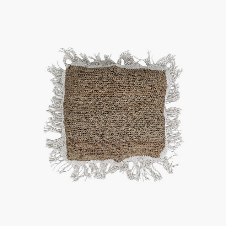 Ürün İsmi: Natural Makrome Beyaz Püsküllü Kare Kırlent 50 cm