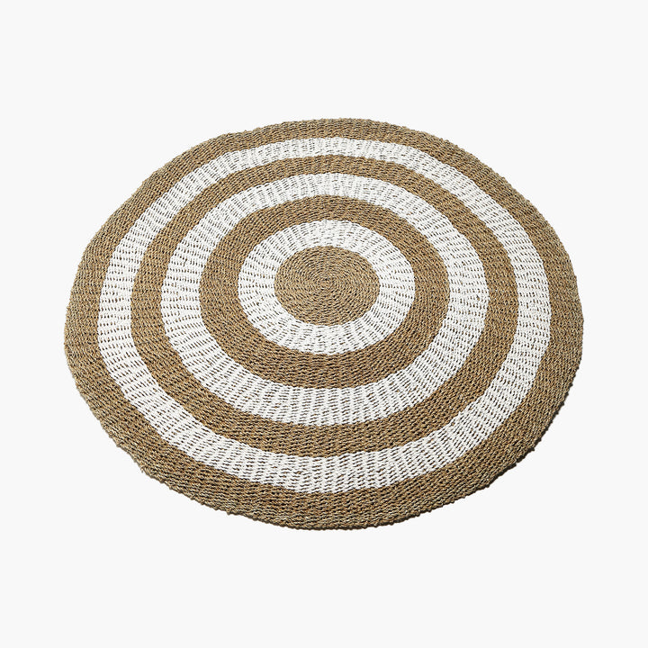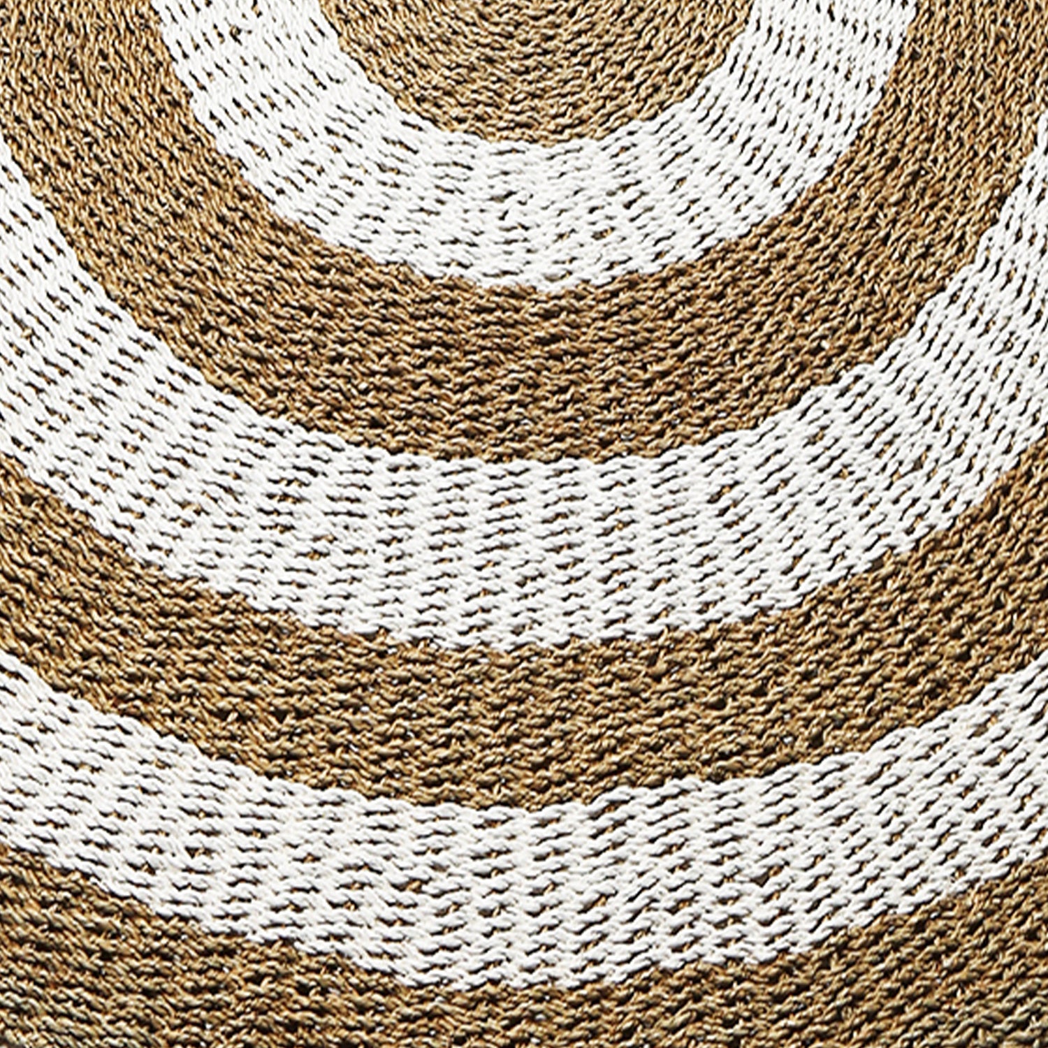 Asya’nın köklü dokuma geleneğinden ilham alan Natural&White Seagrass Yuvarlak Halı, tamamen el yapımı bir tasarımla ev, otel ve restoran gibi mekânlarda doğal bir sıcaklık yaratır. %100 seagrass liflerinin dayanıklılığı sayesinde, modern iç tasarım ürünleri arasında şık bir dekorasyon objesi olarak öne çıkar. El yapımı mobilya ve rattan sandalye gibi doğal dokulu parçalarla mükemmel uyum sağlar.