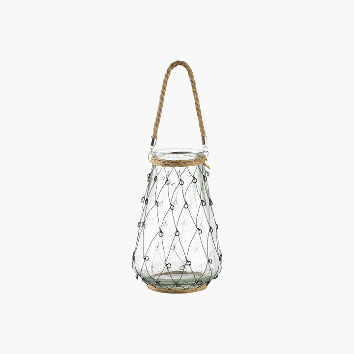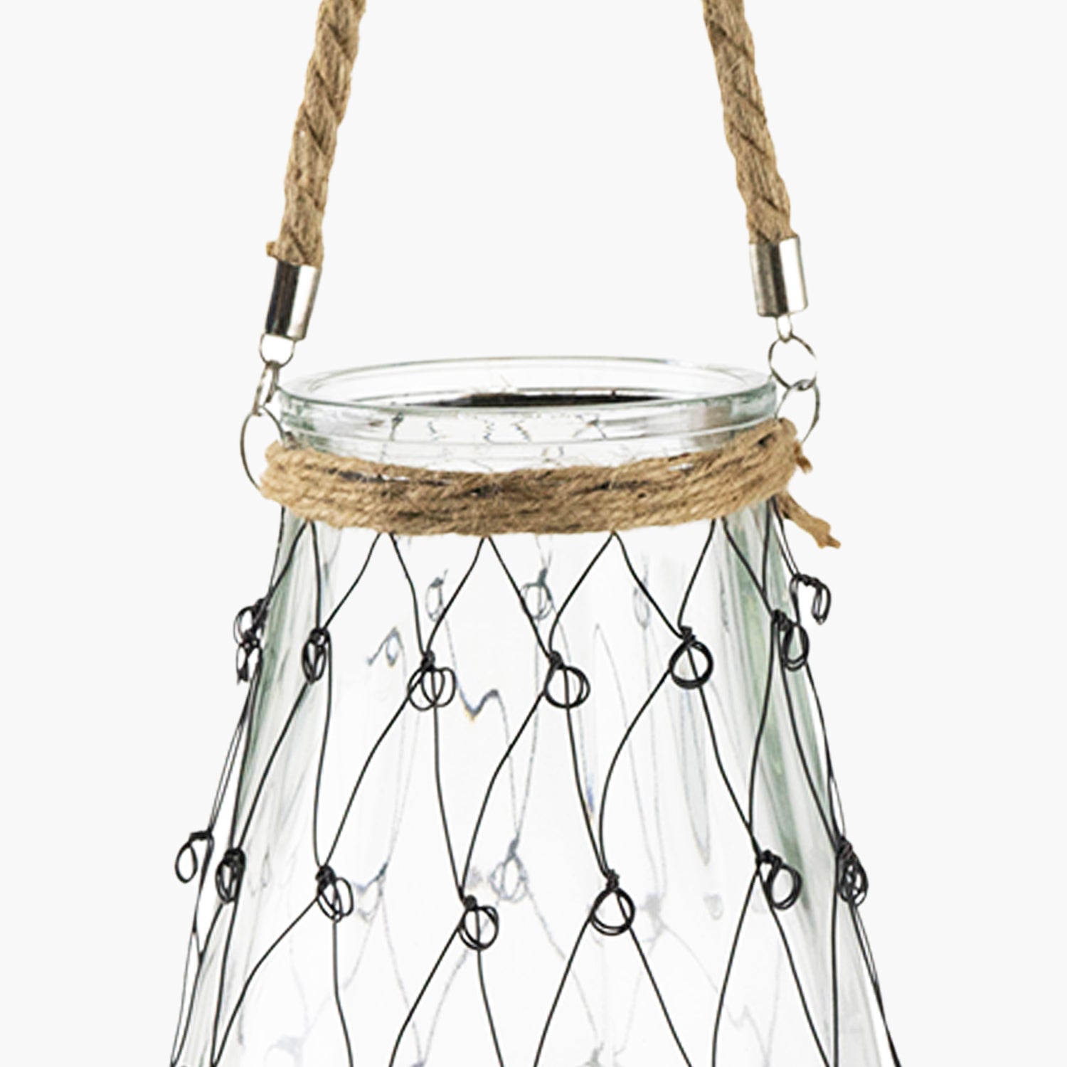 Malzeme: Cam, siyah metal örgü ve doğal halat