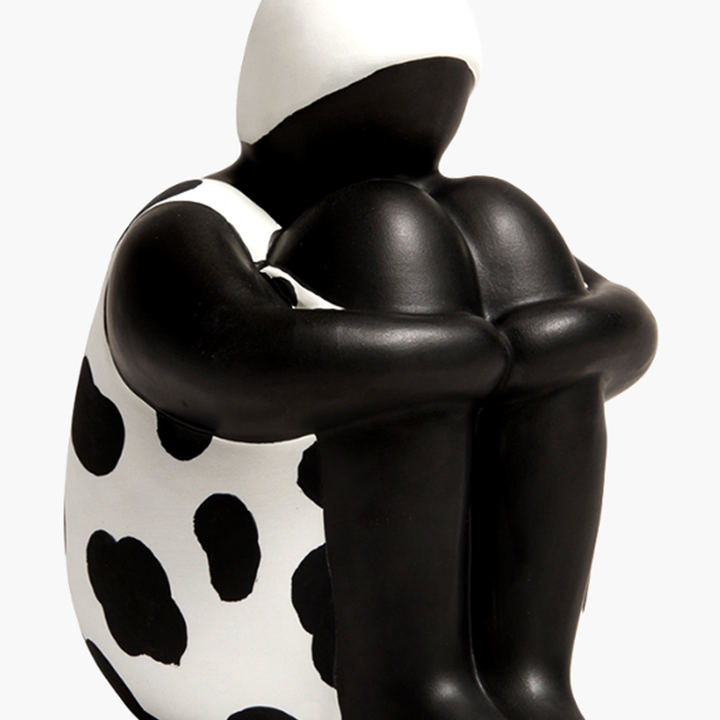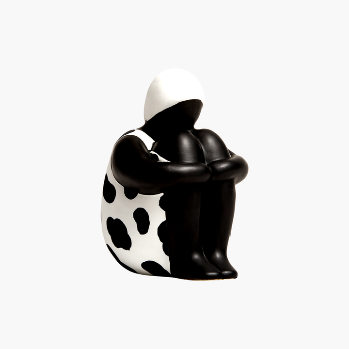 Minimalist tasarımı ve siyah-beyaz kontrastıyla dikkat çeken oturan kadın figür obje, zarif bir sanat eseri gibi yaşam alanlarınıza modern bir dokunuş kazandırır. Sakin ve düşünceli duruşu, her ortamda huzur ve estetik bir atmosfer yaratır. Salon, ofis ya da yatak odasında şık bir dekoratif obje olarak kullanabilirsiniz.