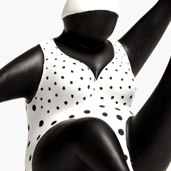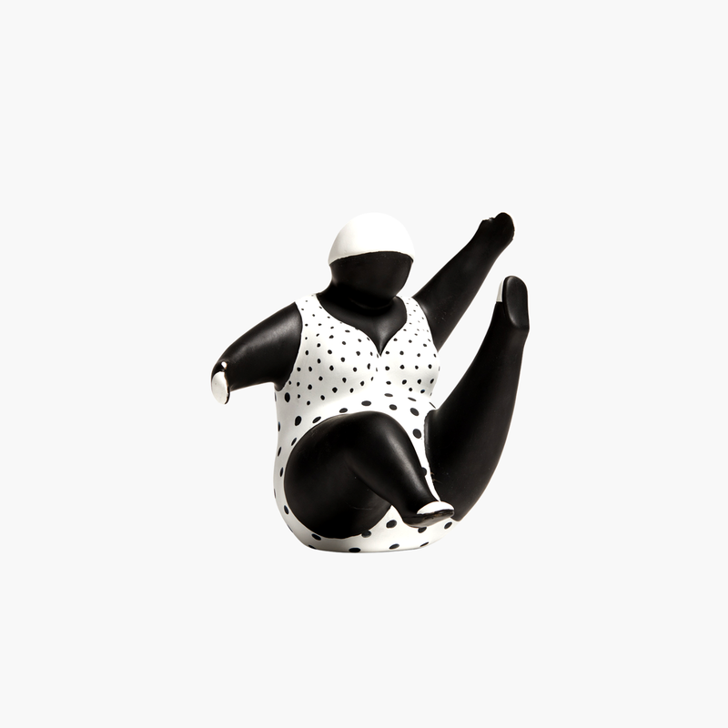Bu hareketli kadın figürü, sade bir ortamda tek başına sergilendiğinde güçlü bir vurgu yaratır. Benzer temadaki diğer objelerle kombinleyerek enerjik bir koleksiyon oluşturabilirsiniz.