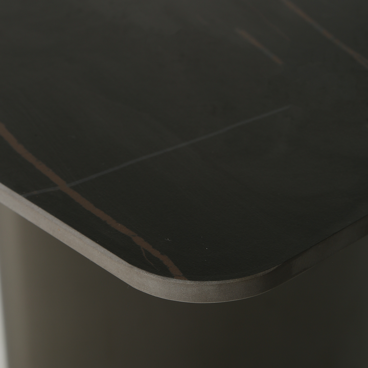 Şıklığın ve sağlamlığın buluştuğu bu yemek masası, paslanmaz çelik ayakları ve sintered stone yüzeyi ile modern bir tasarım sunar. Geniş yüzeyi, hem günlük kullanımlar hem de özel davetler için ideal bir alan sağlar. Çizilmeye ve yüksek ısıya dayanıklı yapısı, uzun ömürlü bir kullanım sunarken, zarif ve sade tasarımı yaşam alanlarınıza sofistike bir dokunuş katar.