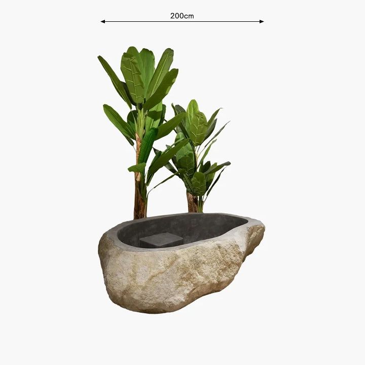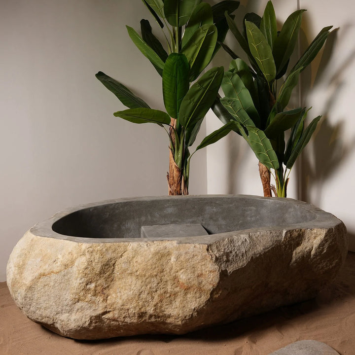 Doğanın huzurunu evinize veya bahçenize taşıyın: 200 cm’lik Riverstone taş küvet, masif nehir taşından üretilmiş olup iç ve dış mekanlarda kullanıma uygundur. Basamaklı tasarımı ile konforu artırır, dış mekanda rahatlatıcı bir spa deneyimi sunar.