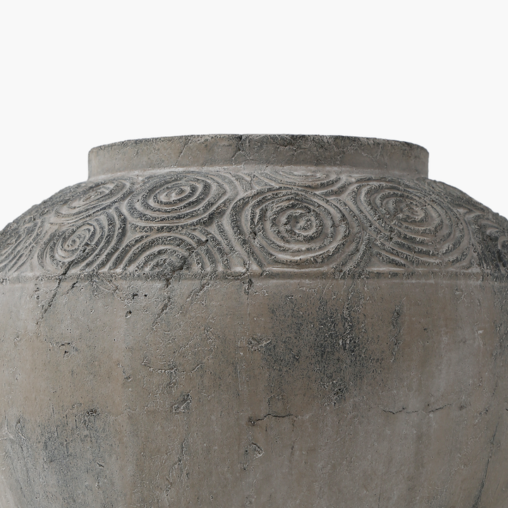 Geniş ve zarif tasarımıyla dikkat çeken bu saksı, spiral desenleri ve doğal taş dokusuyla yaşam alanlarınıza sofistike bir dokunuş katar. Beton görünümlü dayanıklı yapısıyla hem modern hem de rustik dekorasyon tarzlarına uyum sağlar. Bitkilerinizin doğal güzelliğini ön plana çıkarırken, şık bir dekorasyon objesi olarak da kullanılabilir.