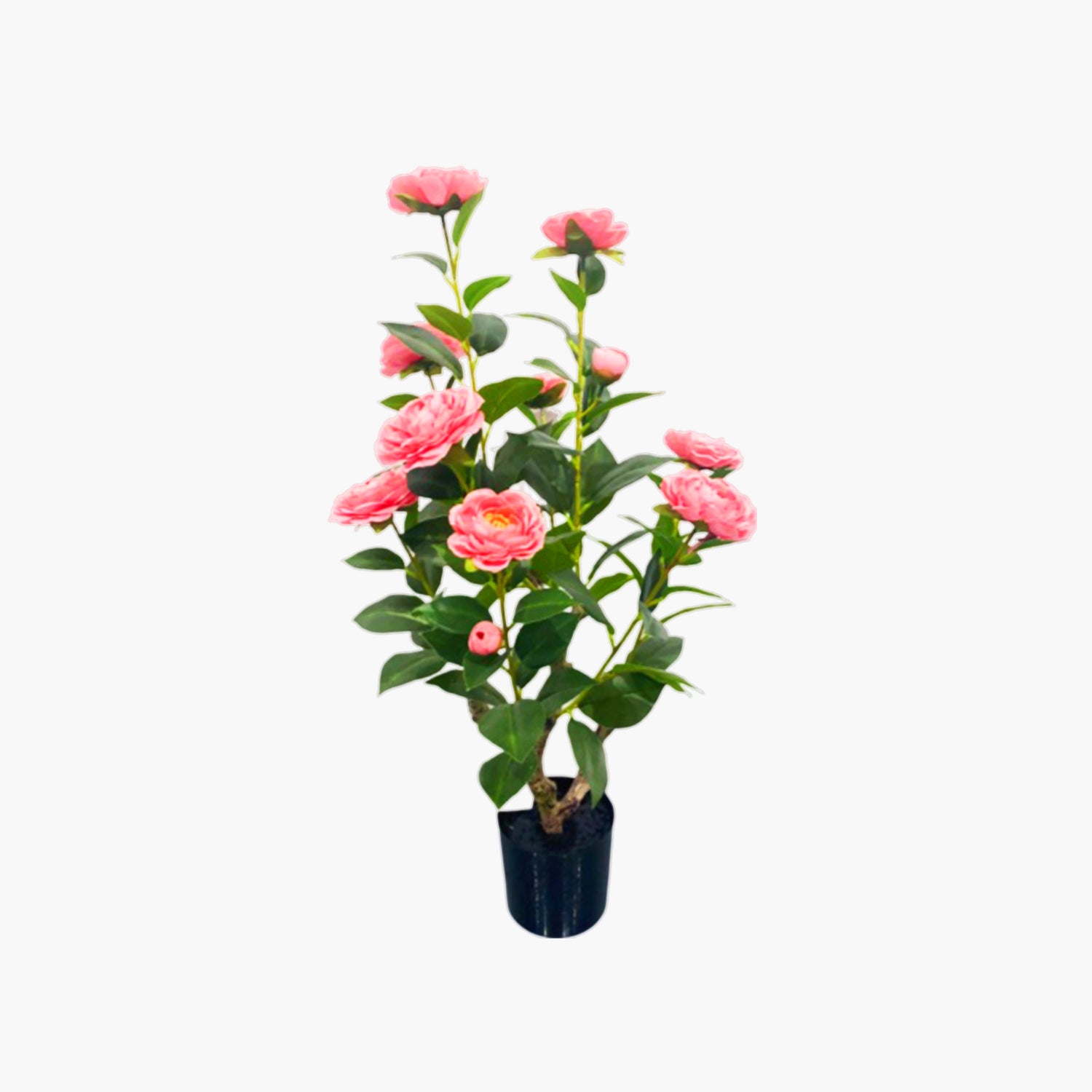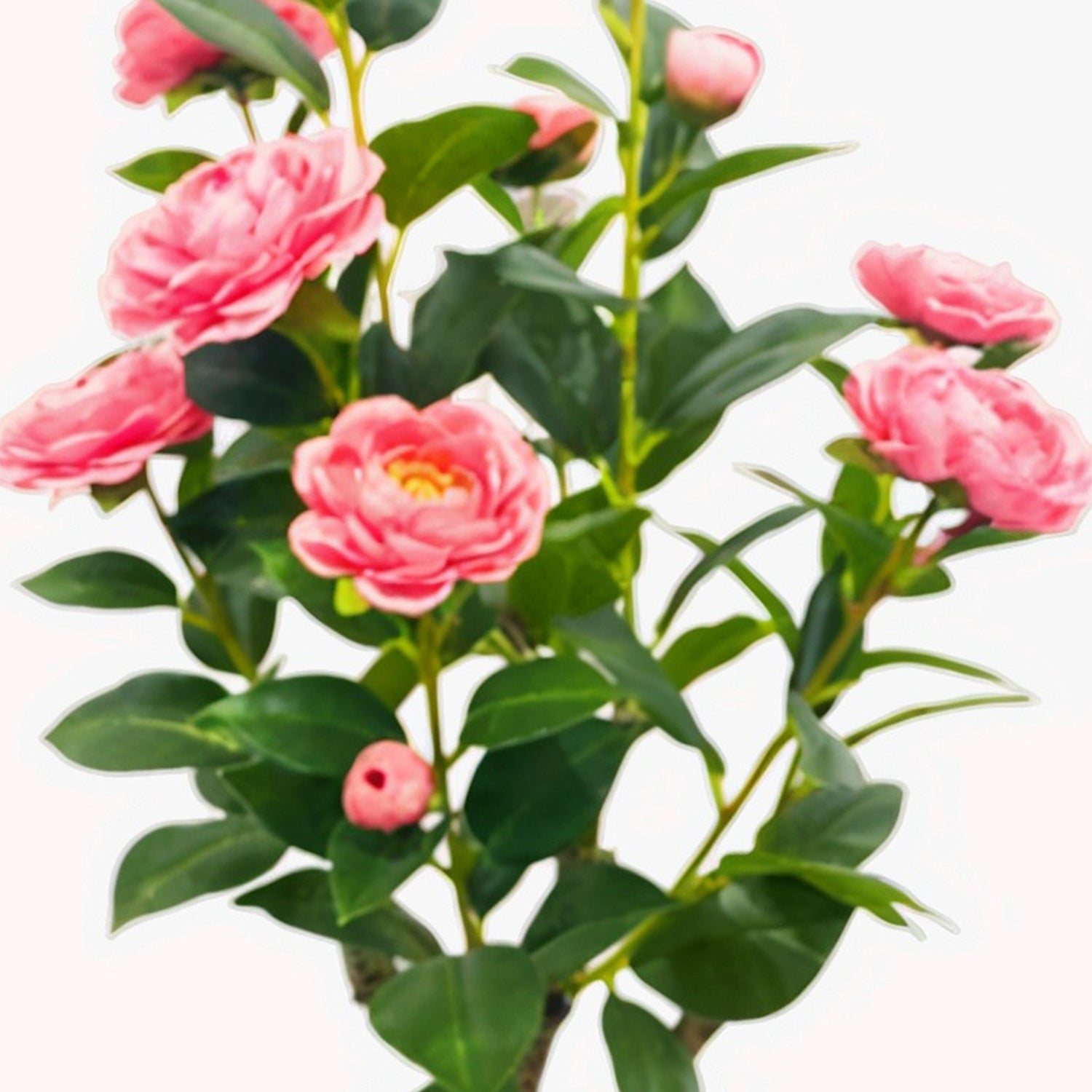 70 cm yüksekliğindeki saksılı Camellia ağacı, canlı pembe çiçekleri ve doğal görünümüyle yaşam alanlarınıza sofistike bir hava katar. Özenle tasarlanmış yaprak ve çiçek detayları, Camellia'nın zarafetini yansıtarak hem ev hem de ofis dekorasyonunda etkileyici bir atmosfer oluşturur.