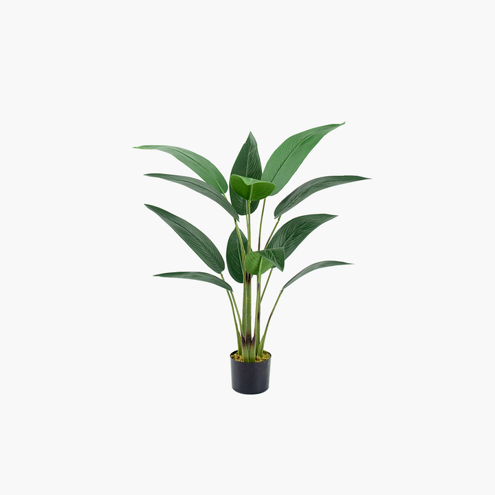 Evinize zarafeti ve tropikal atmosferi bir arada sunan saksılı Cennet Kuşu Ağacı, büyük ve dikkat çekici yapraklarıyla yaşam alanlarınızı canlandırır. Gerçekçi detayları sayesinde doğal bir bitki görünümü sunar ve modern dekorasyon anlayışıyla uyum sağlar. Hem evlerde hem de otel ve restoran gibi şık mekanlarda etkileyici bir dekorasyon öğesi olarak kullanılabilir.