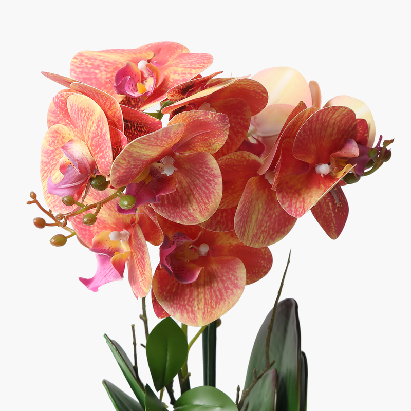 Canlı turuncu tonlardaki çiçekleriyle Phalaenopsis Orkidesi, yaşam alanlarınıza enerji ve sofistike bir dokunuş getiriyor. Özel saksısı ile bir araya gelen bu yapay bitki, zarafeti ve modern dekorasyon anlayışını mükemmel bir şekilde birleştirir. Ev, ofis veya otel lobilerinde göz alıcı bir atmosfer yaratmak için ideal bir tercih.