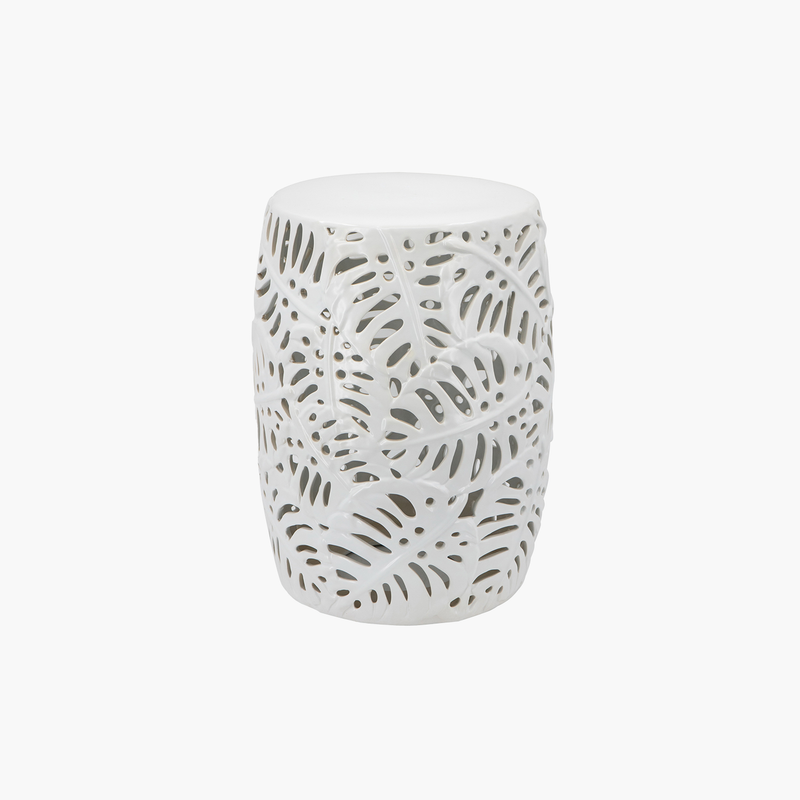Bu zarif seramik tabure, küçük dekoratif objelerle veya çiçek vazolarıyla süslenerek hem yan sehpa hem de oturma alanı olarak kullanılabilir. Minimalist beyaz rengi sayesinde her dekorasyon stiliyle uyum sağlar.