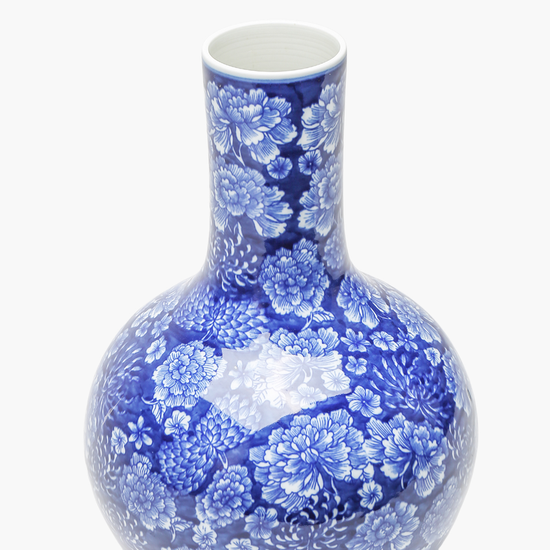 Ürün Metni: Bu zarif 35 cm boyutundaki seramik vazo, mavi-beyaz çiçek desenleriyle geleneksel Çin porselen sanatının güzel bir örneğidir. Şık ve zarif tasarımı, her tür iç mekanla uyum içinde çalışarak estetik bir dokunuş ekler. Özellikle, evinizin her köşesinde dikkat çekici bir öğe olarak veya otel ve restoran gibi mekanlarda şık bir atmosfer yaratmak için idealdir. Bu vazo, kışın sıcak ve davetkâr bir ortam yaratmak için mükemmel bir seçenek olup, Yılbaşı dönemi gibi özel zamanlar için harika bir dekorasyon parçasıdır.