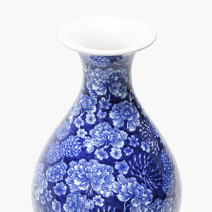 Ürün Metni: Bu 35 cm boyutundaki seramik vazo, derin mavi tonları ve zarif çiçek desenleriyle göz kamaştırıcı bir estetik sunar. Geleneksel Çin porseleninden ilham alarak, her türlü iç mekanda modern bir dokunuş yaratmak için mükemmeldir. Özellikle otel, restoran gibi ticari mekanlarda ya da evinizin salonunda şıklığı ve zarafetiyle dikkat çeker. Kış aylarında, soğuk havaların iç mekanları daha sıcak hale getirdiği bir atmosferde, bu vazo ortamınıza sıcaklık ve zarif bir dokunuş katacaktır.