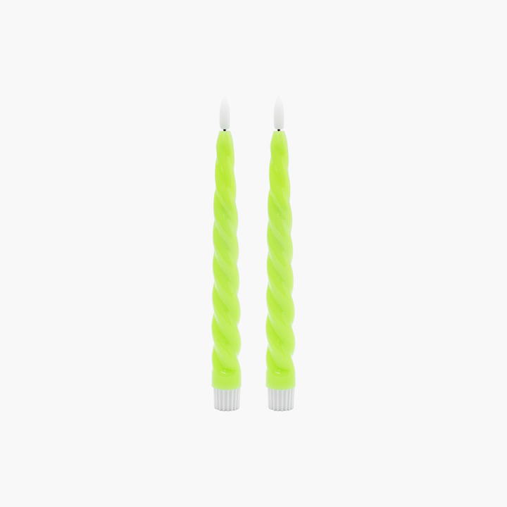 Set Burgulu Led Işık Yeşil Mum 22cm 2'li
