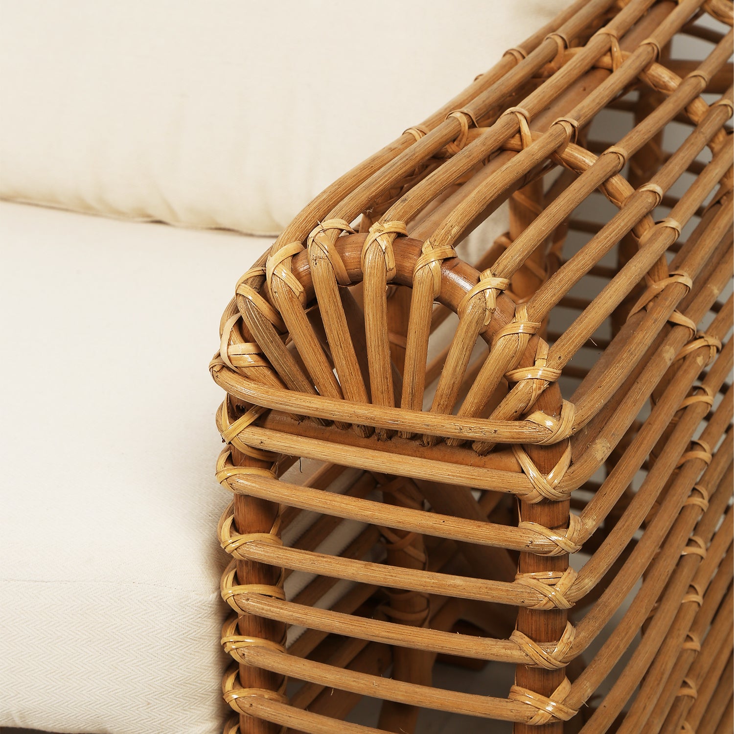 Sole 3'lü Minderli Koltuk, ustalıkla şekillendirilmiş rattan gövdesi ve yumuşak minderleriyle ev, otel ve restoran gibi mekânlarda konforu ve estetiği bir arada sunar. Tamamen el yapımı mobilya niteliğindeki bu parça, modern iç tasarım ürünleri arasında şık dekorasyon objesi arayanlar için ideal bir seçimdir. Dayanıklı yapısı ve doğal görünümü sayesinde, rattan koltuk konseptinin zarafetini yaşam alanlarınıza taşıyarak sıcak bir atmosfer yaratır.