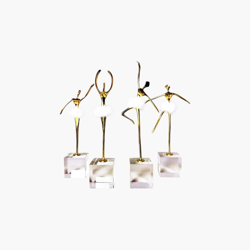 Sanatın ve zarafetin eşsiz bir yansıması olan bu balerin figür obje, altın rengi detayları ve kürklü tasarımıyla her mekana sofistike bir atmosfer katar. Kristal standıyla modern bir duruş sergileyen obje, evinizde ya da çalışma alanınızda sanatsal bir odak noktası oluşturur.