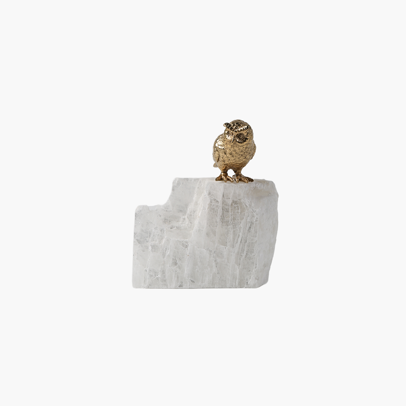 Malzeme: Metal baykuş figürü ve doğal taş taban