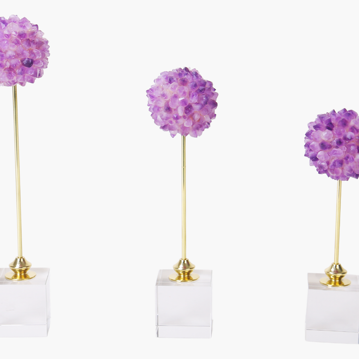 Kristal kürenin eşsiz dokusu ve mor rengin dinginliği, bu dekoratif obje ile yaşam alanlarınıza zarafet getiriyor. Altın detaylı standı ve şeffaf kare kaidesi, modern ve lüks bir görünüm sunarak iç mekanlarınızda dikkat çekici bir estetik oluşturur. Salon, ofis veya otel lobilerinde şık bir vurgu objesi olarak kullanabilirsiniz.