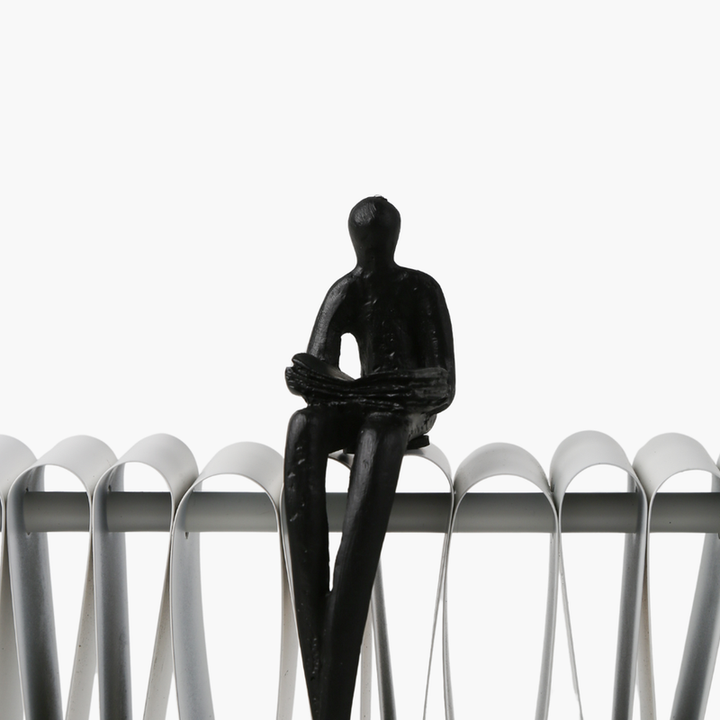 Ürün Metni: Standlı Noble Dekor Obje Siyah, modern tasarımın zarif bir örneği olarak mekanlarınıza şıklık katmak için ideal. Siyah metal stand üzerinde yer alan, kitap sayfalarını andıran kesimlerin arasına yerleştirilmiş oturan insan figürü, minimalist tasarımı ve güçlü anlamı ile dikkat çeker. Hem işlevsel hem de estetik açıdan kusursuz olan bu obje, kitap tutkunları ve modern dekorasyonun sevilen takipçileri için mükemmel bir seçenek.