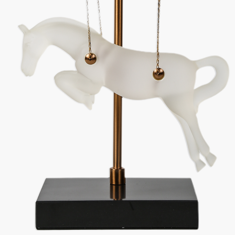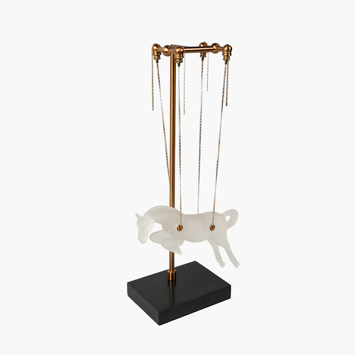Buzlu cam at figürü zarif ve özgün bir hava yaratır