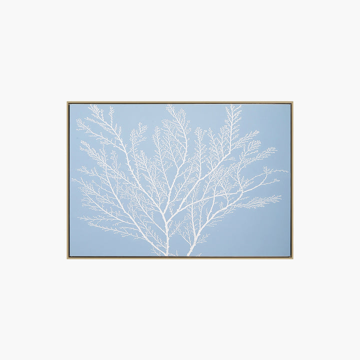 Deniz esintisini mekanlarınıza taşıyan Mavi Tablo, sade ve etkileyici tasarımıyla evinize huzurlu bir atmosfer kazandırır. Yumuşak mavi tonlarındaki arka plan üzerinde beyaz doğa desenleri, ferah bir denge oluşturur. Hem modern hem de klasik dekorasyon stillerine mükemmel uyum sağlar.