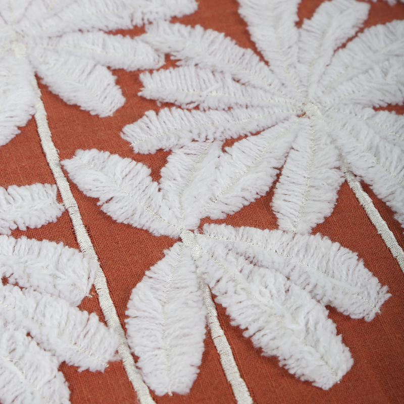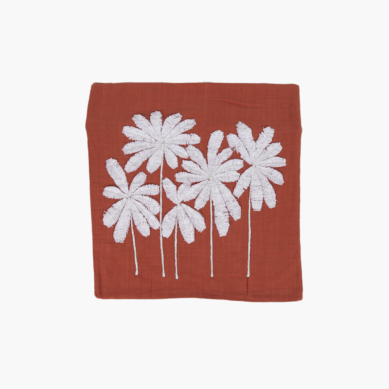 Terracotta Renk Pamuklu Çoklu Palmiye Nakışlı Kare Kırlent