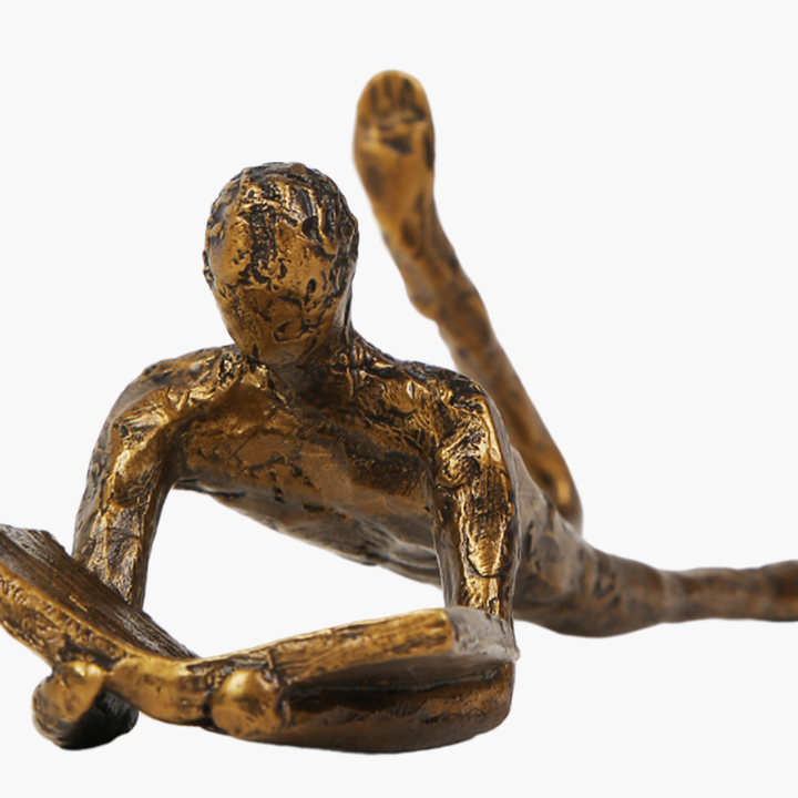 Ürün Metni: Zarif detayları ve doğal bakır tonlarıyla modern bir sanat eseri olan bu uzanan insan figür obje, yaşam alanlarınıza sofistike bir dokunuş katıyor. Hem estetik hem de anlam yüklü bir dekoratif parça arayanlar için ideal olan bu obje, dinlenme ve okuma temasıyla huzuru ve dinginliği simgeliyor.