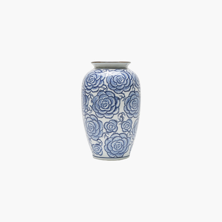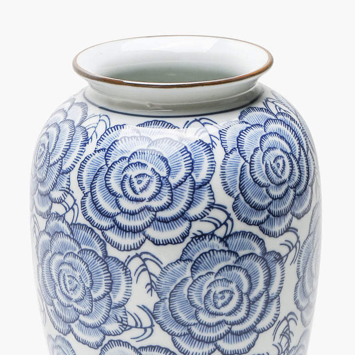 Bu şık uzun seramik vazo, zarif mavi-beyaz çini desenleriyle her mekana sofistike bir dokunuş katar. Geleneksel Uzakdoğu el sanatlarından ilham alarak tasarlanmış bu vazo, zarif güllerle bezenmiş yüzeyiyle göz alıcı bir görsellik sunuyor. Hem modern hem de klasik dekorasyon stilleriyle uyum sağlayarak otel, restoran veya ev ortamlarında dikkat çekici bir atmosfer yaratır. Şıklığı ve zarafeti ile uzun yıllar kullanabileceğiniz bu vazo, el işçiliğiyle benzersiz bir parça haline gelmiştir.