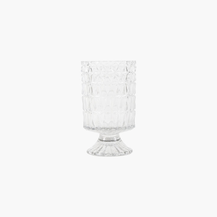 Bu zarif cam vazo, kare desenli benzersiz tasarımıyla dikkat çeker. Şeffaf camın üzerinden geçen keskin hatlar, ışığın yansımasını mükemmel şekilde dağıtarak zarif bir ambiyans yaratır. Hem modern hem de klasik dekorasyonlara uyum sağlayacak şekilde tasarlanmış olan bu vazo, evinizin her köşesine şıklık ve zarafet katmak için ideal bir tercihtir. Özellikle salon, ofis ve otel gibi mekanlarda göz alıcı bir dekoratif öğe olarak kullanılabilir.