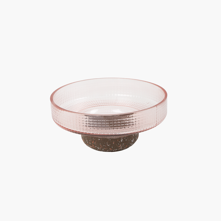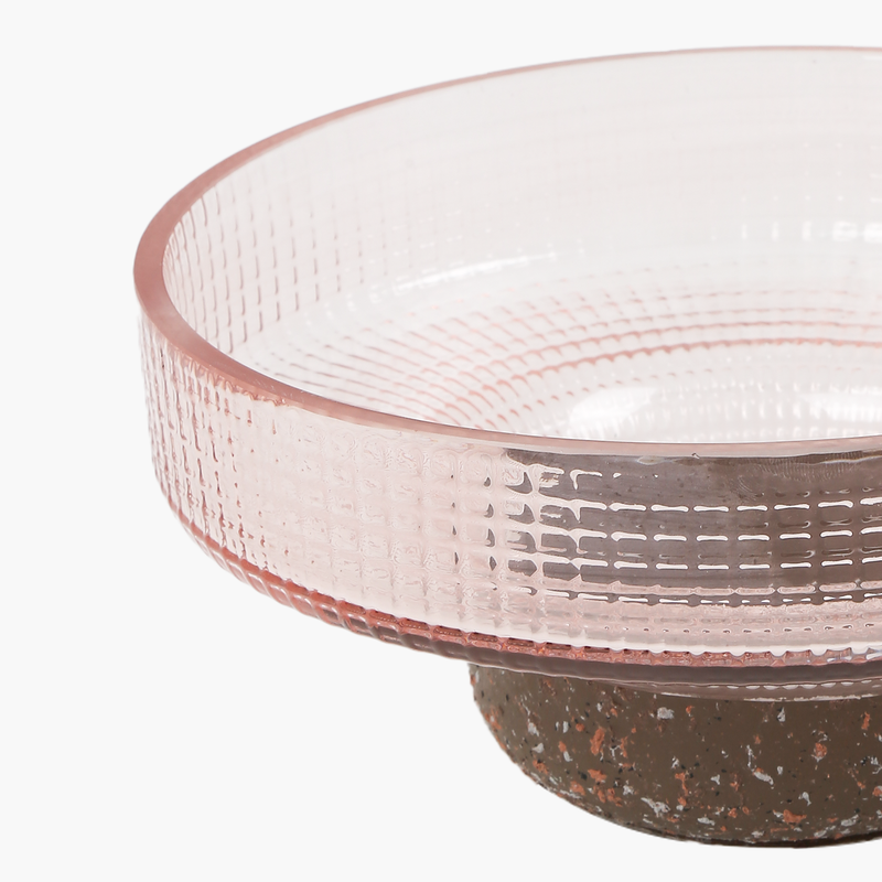 Malzeme: Pembe Cam, Ahşap Tabana sahip
