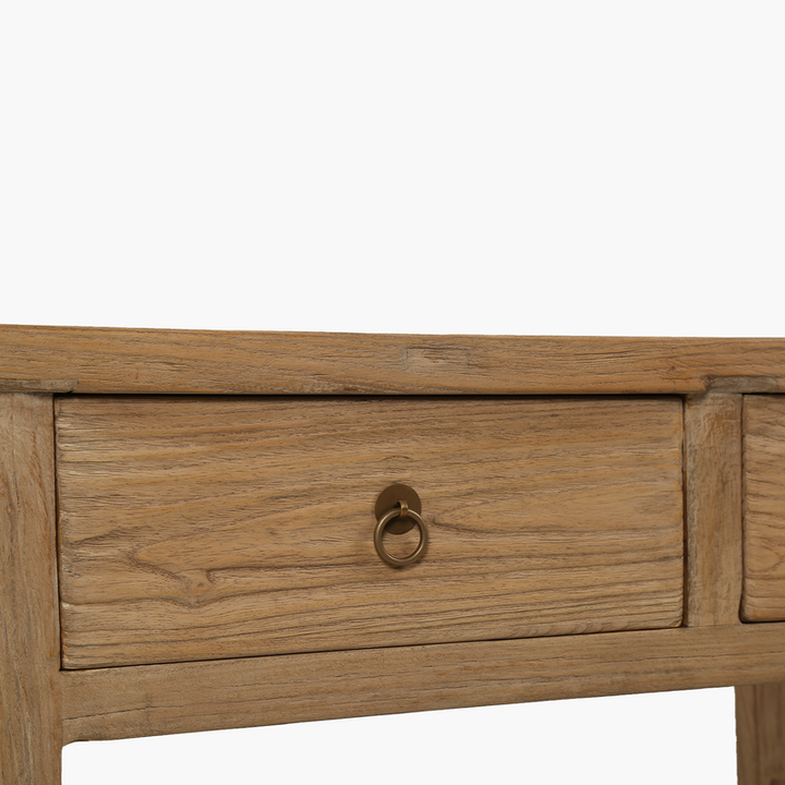 York masif ahşap konsol, kompakt tasarımı ve zarif detaylarıyla öne çıkar. İki çekmecesiyle hem estetik hem de pratik bir depolama çözümü sunar. Doğal ahşap dokusuyla sıcak bir atmosfer yaratan bu konsol, hem modern hem de klasik dekorasyon tarzlarına uyum sağlar. Şık halkalı çekmece kulpları, sade tasarımı tamamlayan şık bir dokunuş sunar.